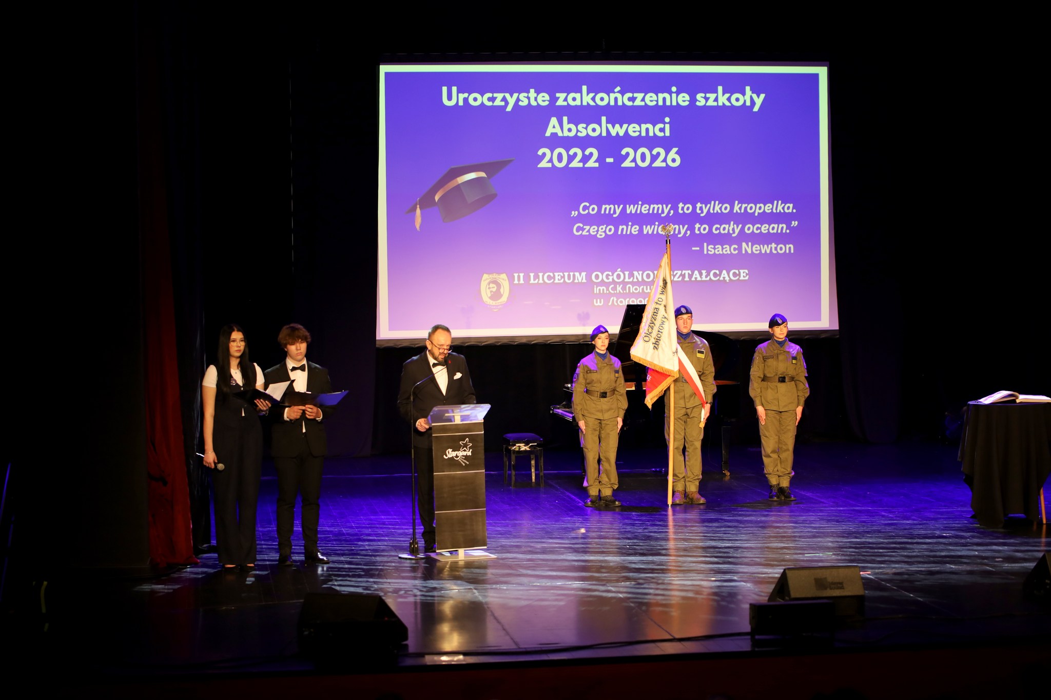 Duża Scena to nie tylko koncerty. Dzisiaj do historii przejdzie pełna wzruszeń uroczystość pożegnania maturzystów stargardzkiego „nowego ogólniania”. Absolwenci rocznika 2022-2026 opuścili mury II Liceum Ogólnokształcącego im. Cypriana Kamila Norwida w Stargardzie.