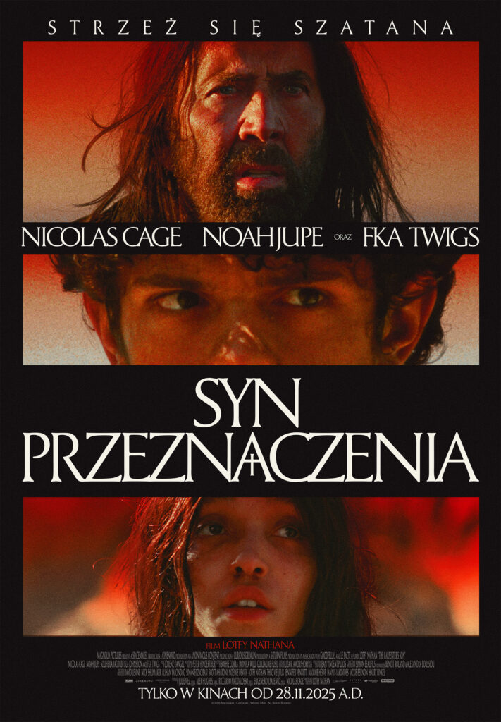 Hipnotyzująca, mroczna i kontrowersyjna opowieść, jakiej jeszcze nie widzieliście. Inspirowany apokryficzną Ewangelią Tomasza film „Syn przeznaczenia” to horror, który balansuje na granicy sacrum i profanum. W rolach głównych wystąpili: Nicolas Cage – postać absolutnie wyjątkowa w świecie kina oraz FKA Twigs – artystka muzyczna łącząca z powodzeniem różne dziedziny sztuki. W rzymskim Egipcie, w czasach prześladowań i niepokoju, pewna rodzina ukrywa się przed światem. Chłopiec (Noah Jupe) dorasta w cieniu tajemniczego Cieśli (Nicolas Cage), którego tożsamość i intencje zaczynają budzić w nim coraz większe wątpliwości. Gdy w jego życiu pojawia się inne dziecko – zwiastun prawdy lub chaosu – Chłopiec zaczyna odkrywać w sobie nadprzyrodzone moce, które mogą zmienić losy świata.