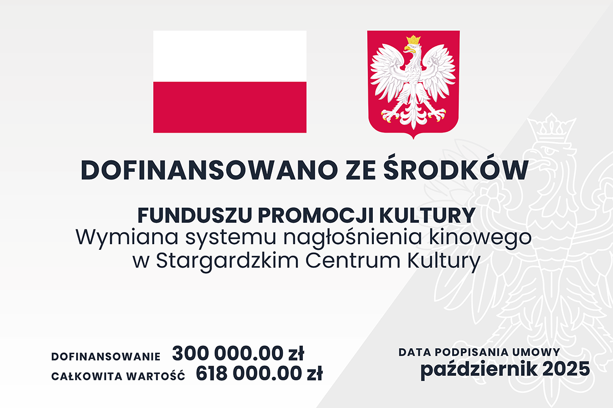Wymiana systemu nagłośnienia kinowego w Stargardzkim Centrum Kultury- dotacja na dofinansowanie przedsięwzięcia z zakresu Programu Operacyjnego IV: Rozwój kin Piorytet I: Modernizacja kin
